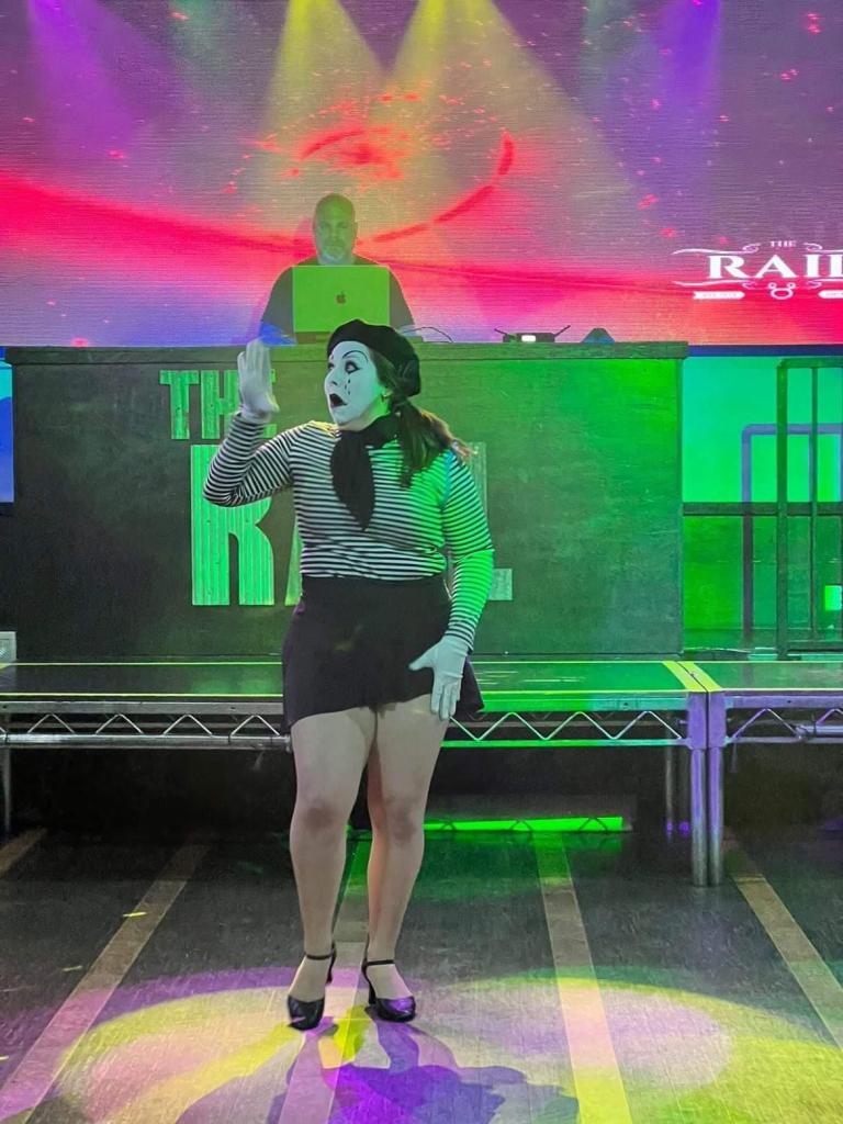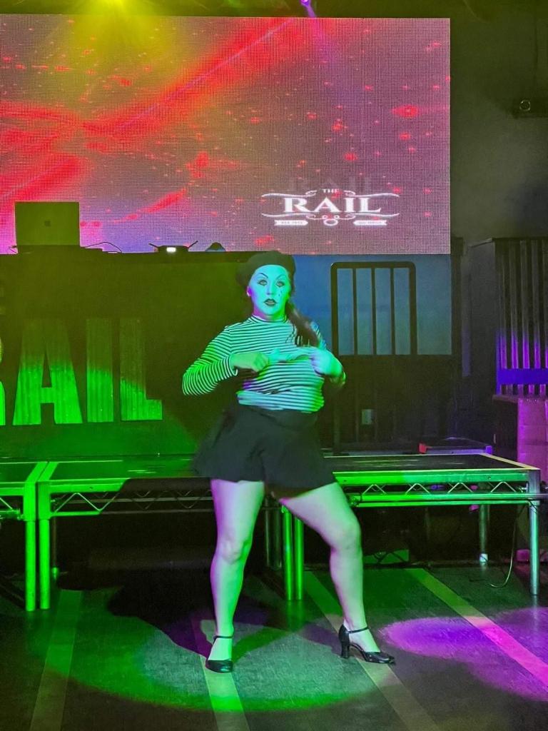 Pinkie performing her mime act at The Rail San Diego