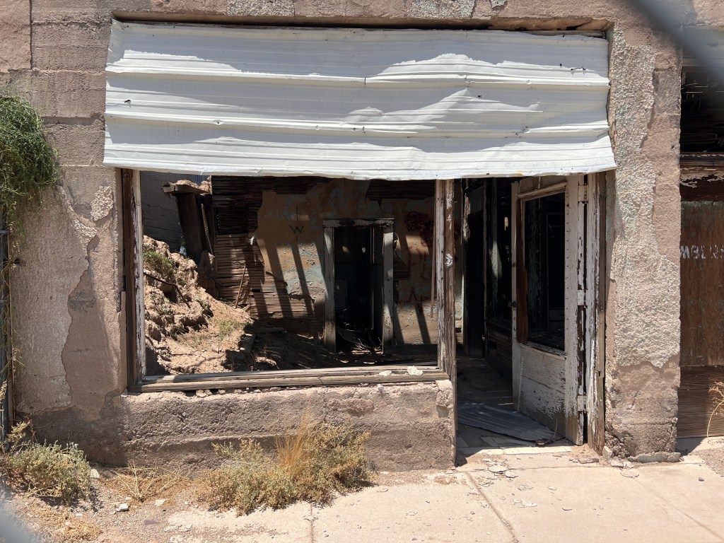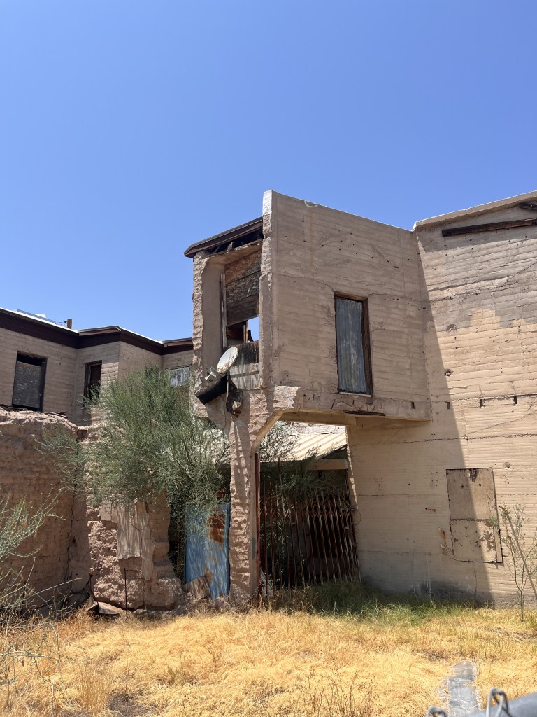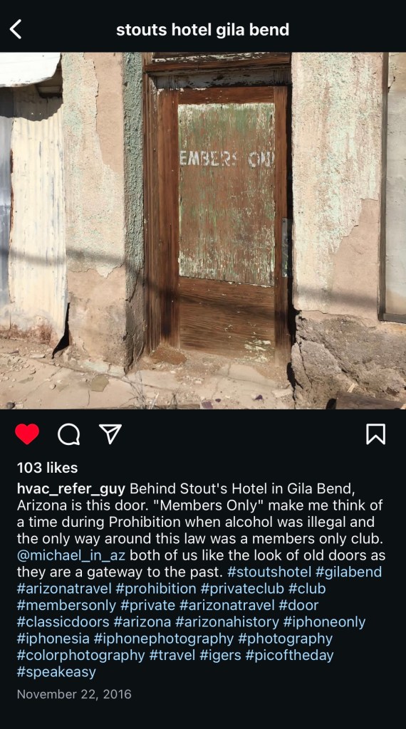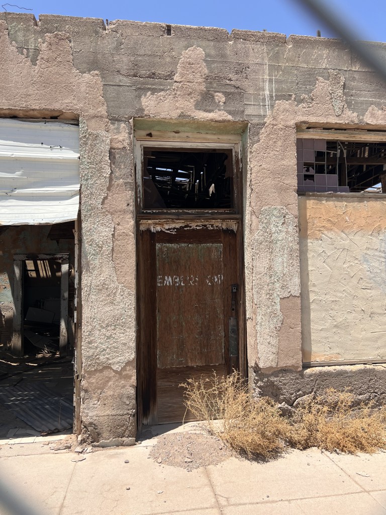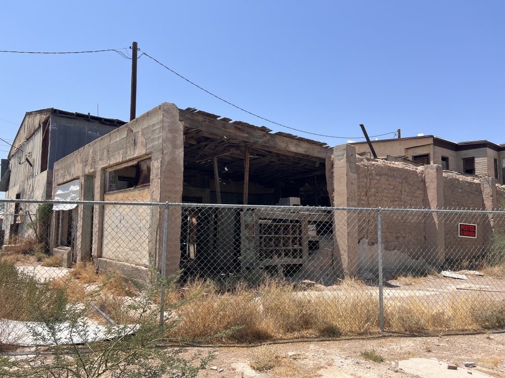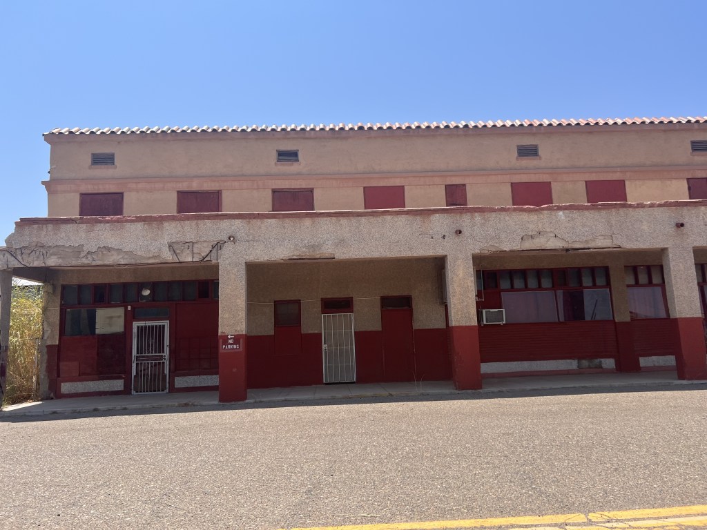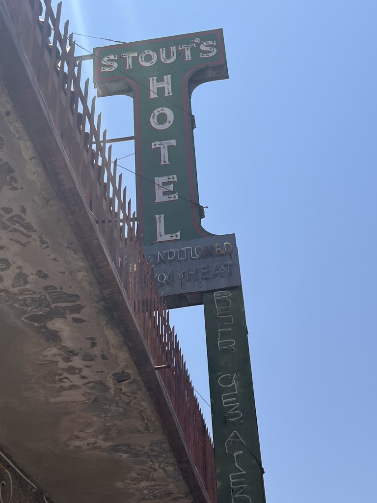 I had a planned historical marker I was excited to get pictures with for my burlesque podcast! Well, the detour cancelled that plan but took me to a piece of treasure in a town rich with history I would have *never* thought to find on my own: Stout’s Hotel of Gila Bend.